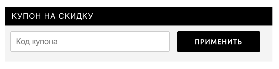 Применить купон можно при оформлении заказа: введите код в поле "Купон на скидку" (этот блок находится под товарами, рядом с бонусами) и нажмите "Применить".