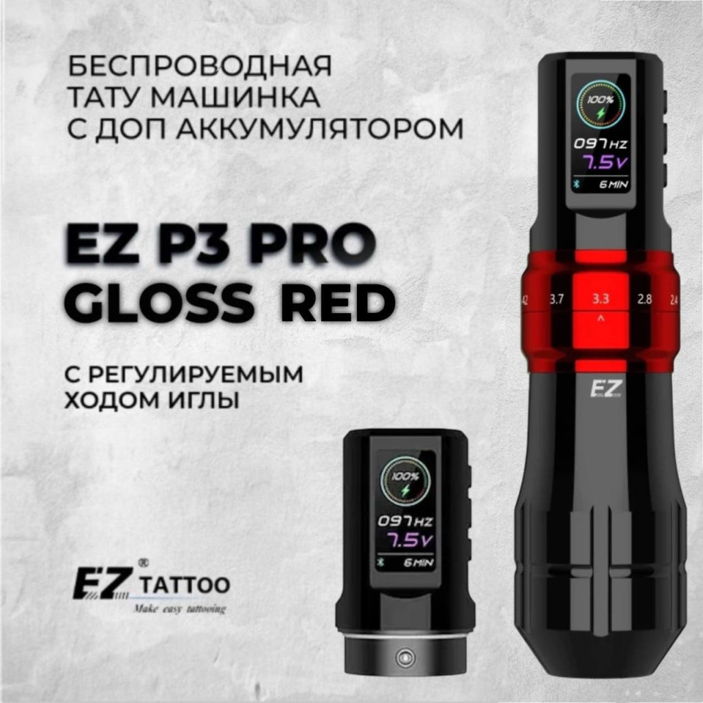 EZ P3 Pro Gloss Red — универсальная беспроводная тату-машинка с регулируемым ходом иглы и дополнител...